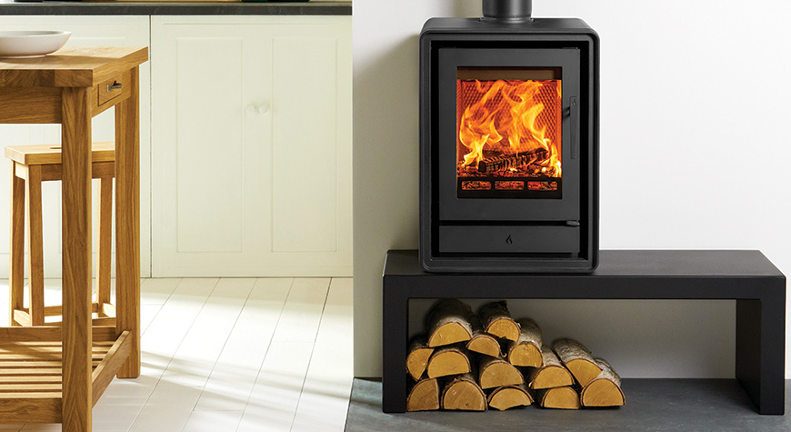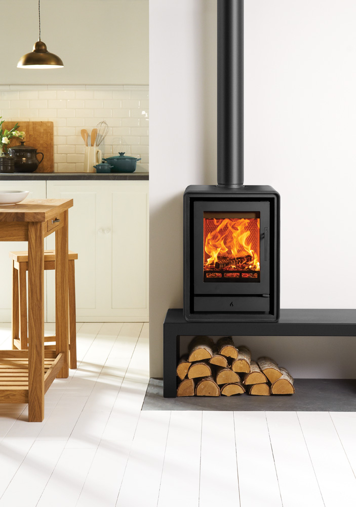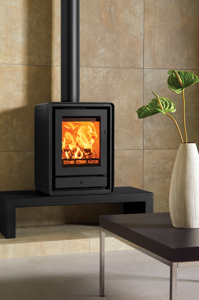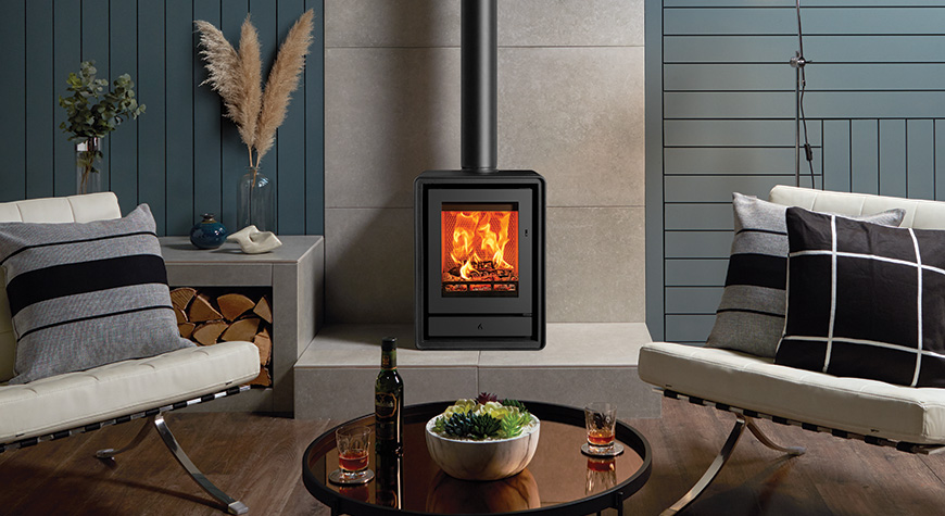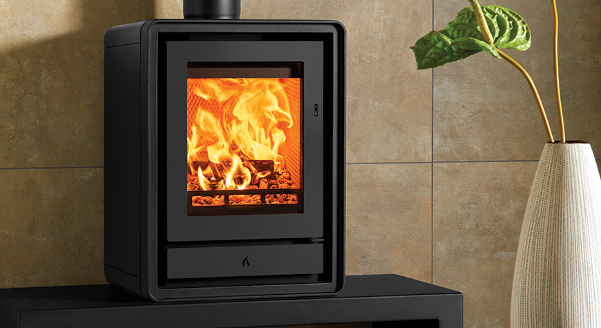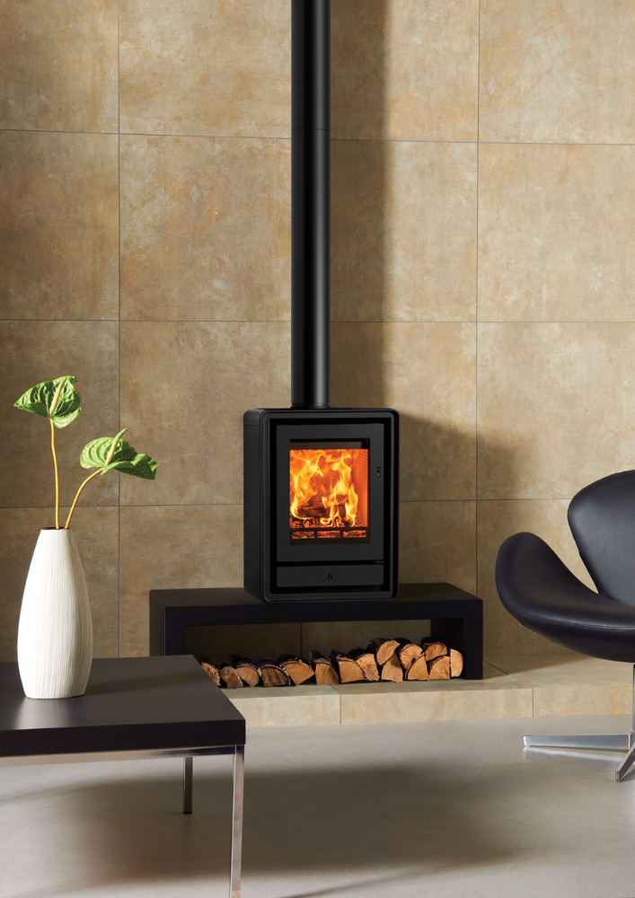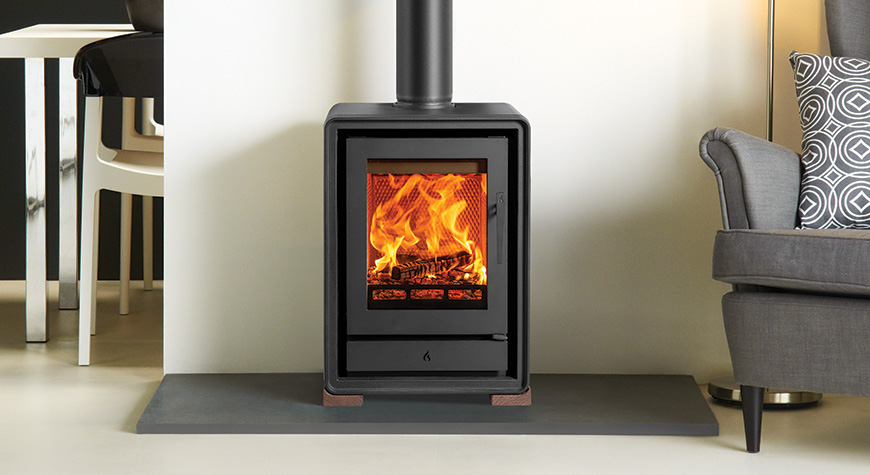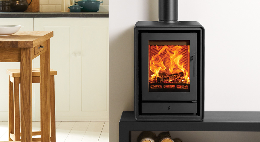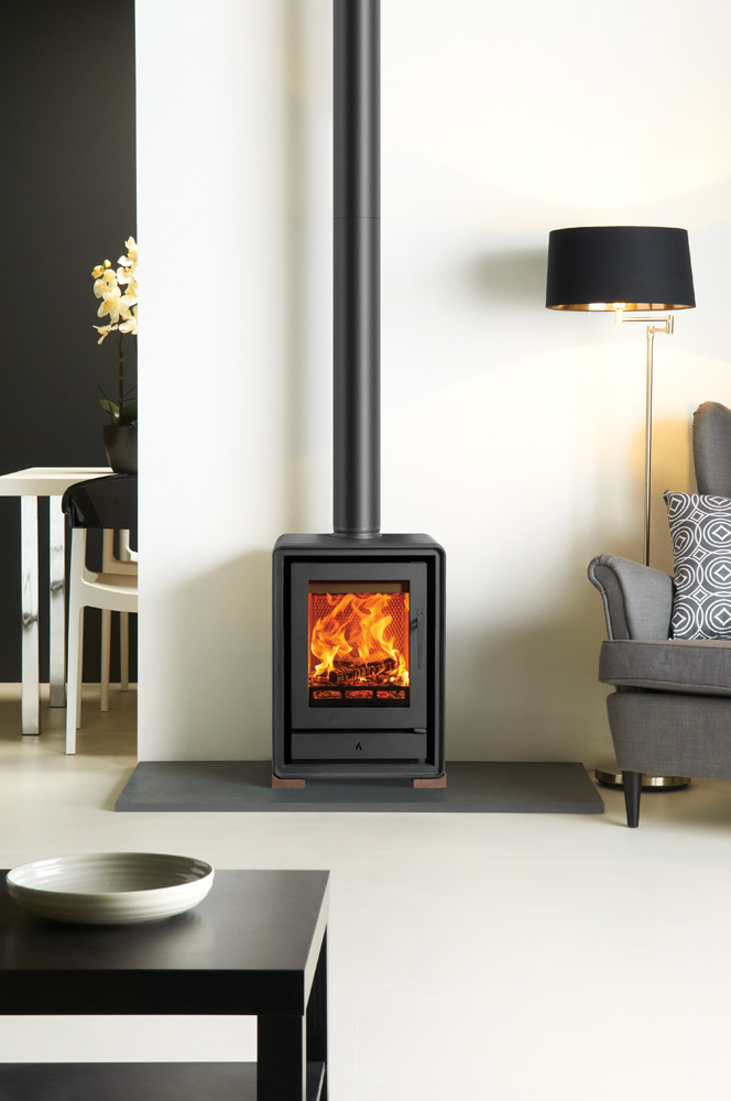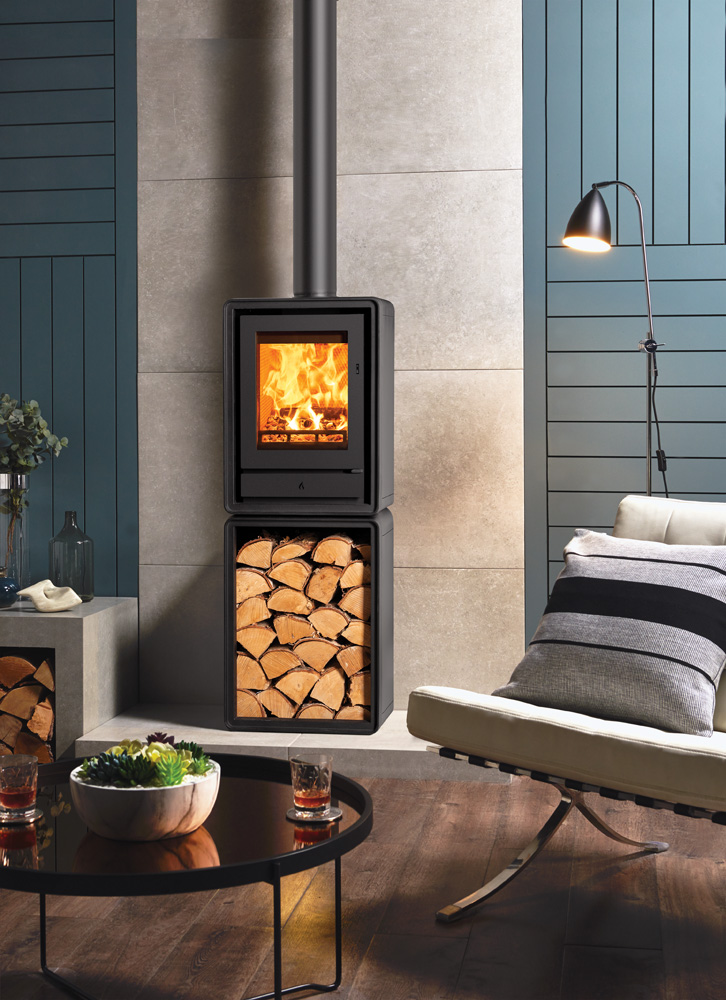 Als aanvulling op de subtiele rondingen van het ontwerp zijn er optionele elegante houten of industriële gietijzeren poten verkrijgbaar, zodat u de uitstraling van de kachel kunt aanpassen aan uw interieur. U kunt ook kiezen voor een handige houtkist, voor extra gemak en een aantrekkelijke uitstraling.