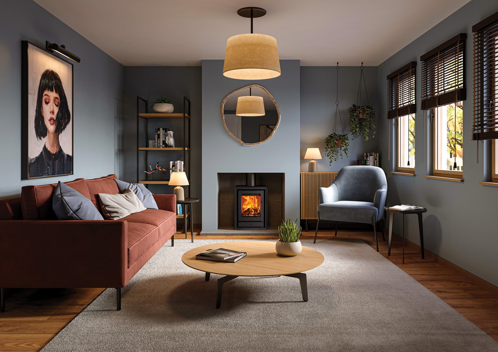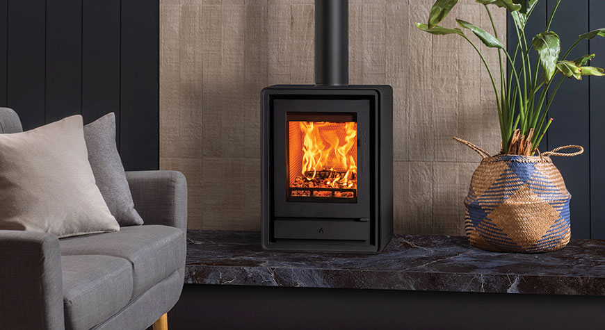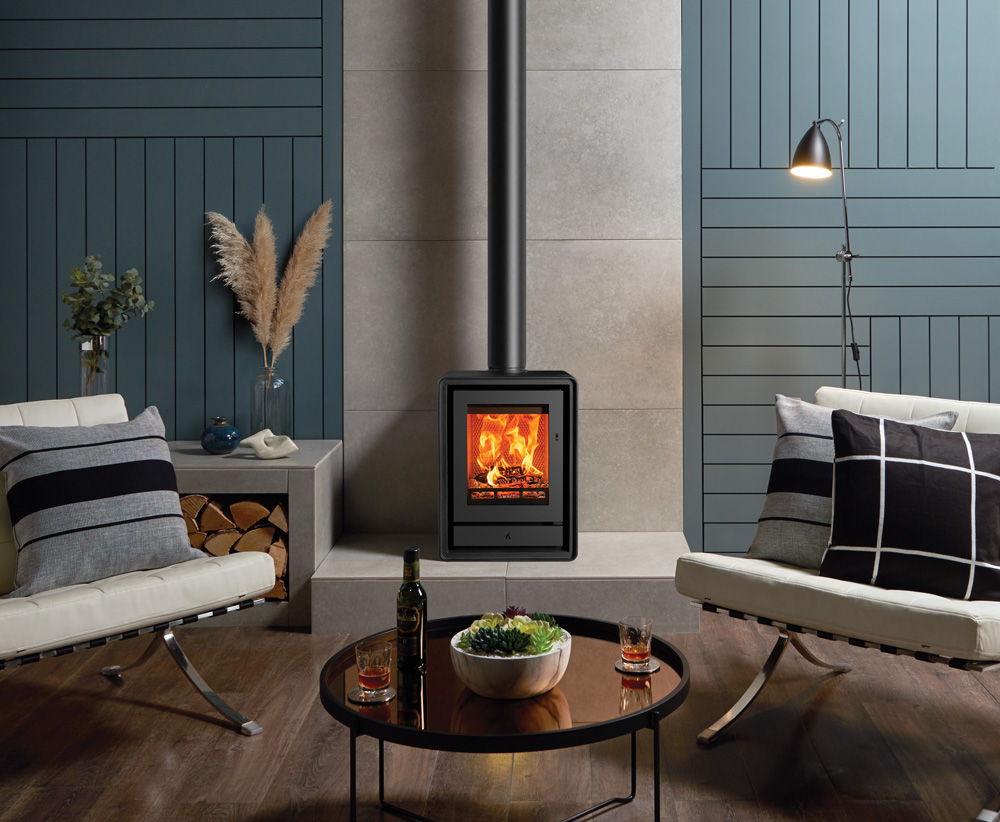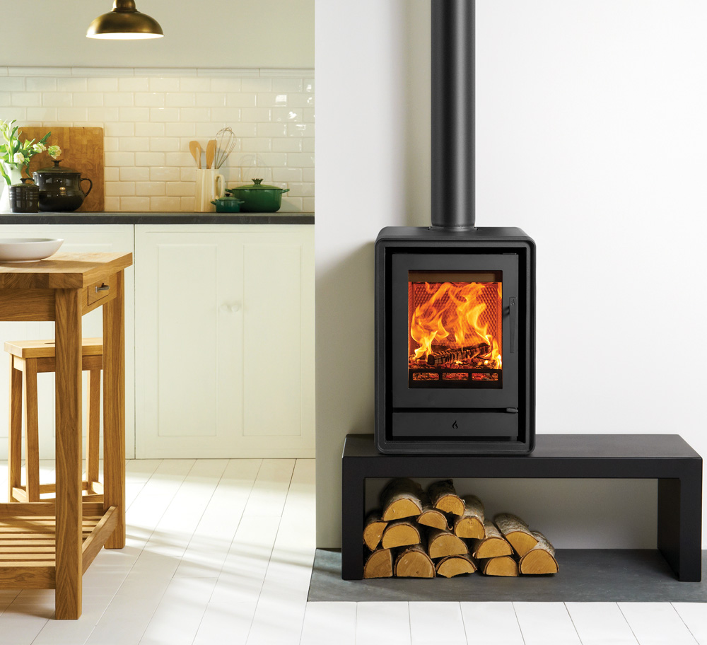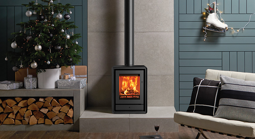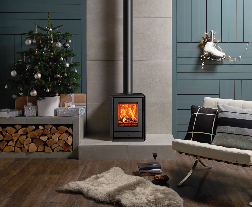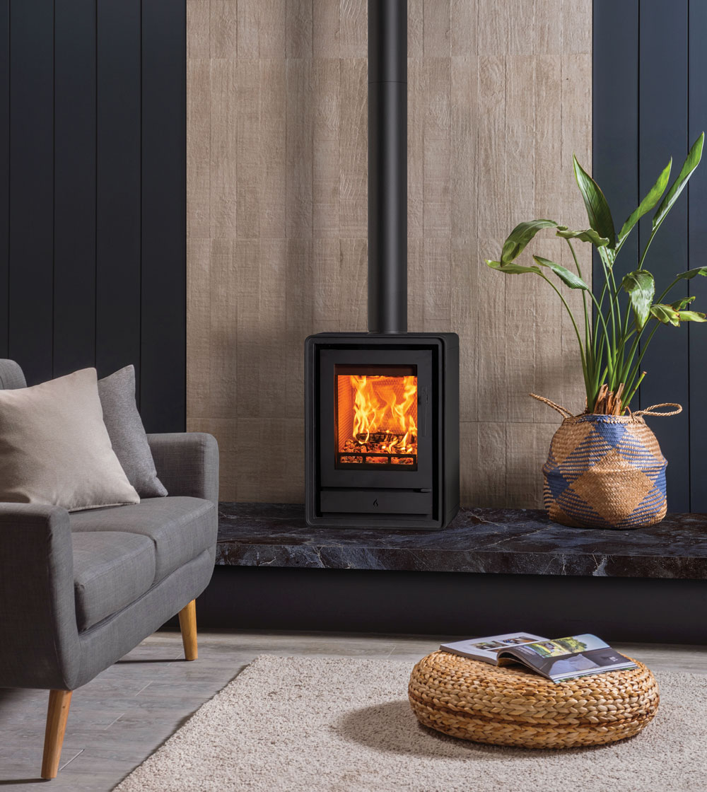 Als aanvulling op de subtiele rondingen van het ontwerp zijn er optionele elegante houten of industriële gietijzeren poten verkrijgbaar, zodat u de uitstraling van de kachel kunt aanpassen aan uw interieur. U kunt ook kiezen voor een handige houtkist, voor extra gemak en een aantrekkelijke uitstraling.