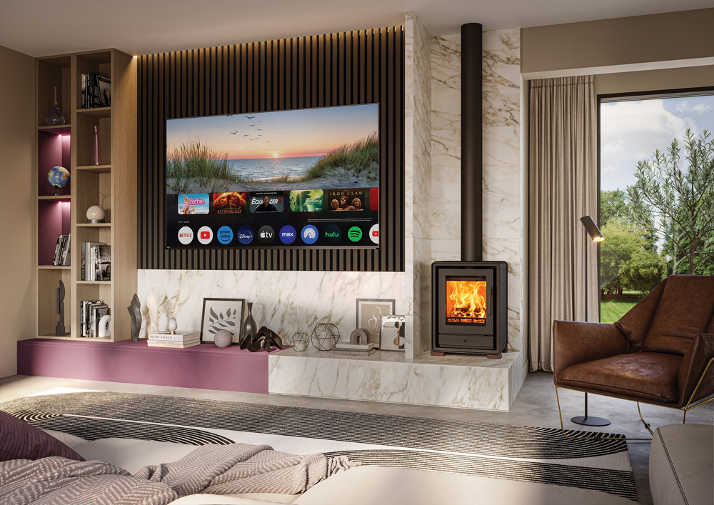 Voor een nog grotere visuele impact kan elk vrijstaand model worden geïnstalleerd op een optionele houtopslagbasis die de kijkhoogte verhoogt en tegelijkertijd de kenmerkende strakke stijl van de Riva2 weerspiegelt. Optionele designvoeten in verschillende afwerkingen bieden nog meer maatwerk, zodat u de look kunt afstemmen op uw interieur.